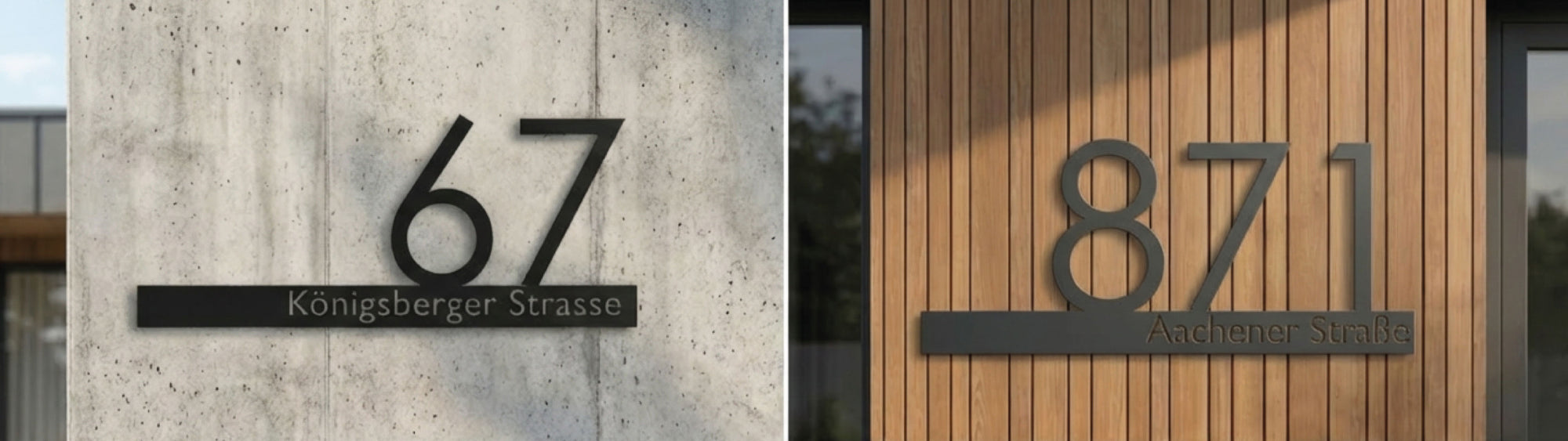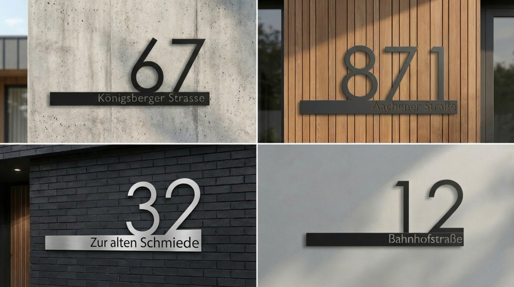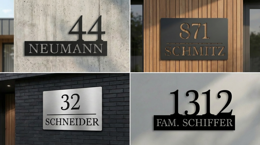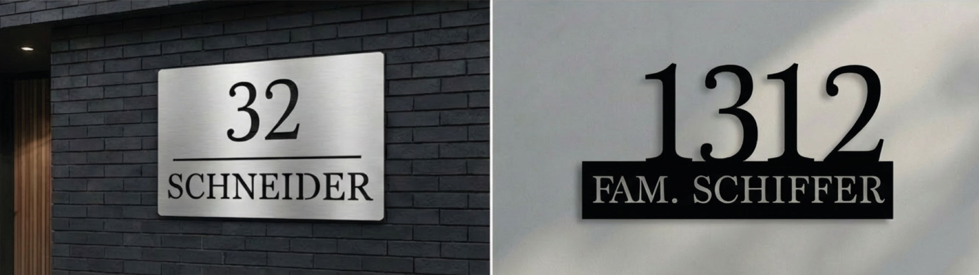 Hausnummern, Namen & Straßenschilder - Größe, Farbe & Text frei wählbar