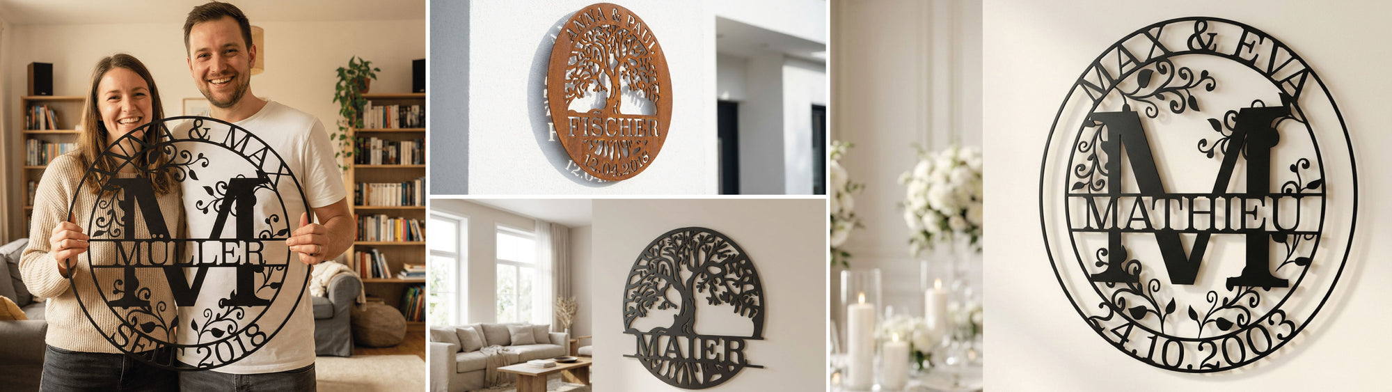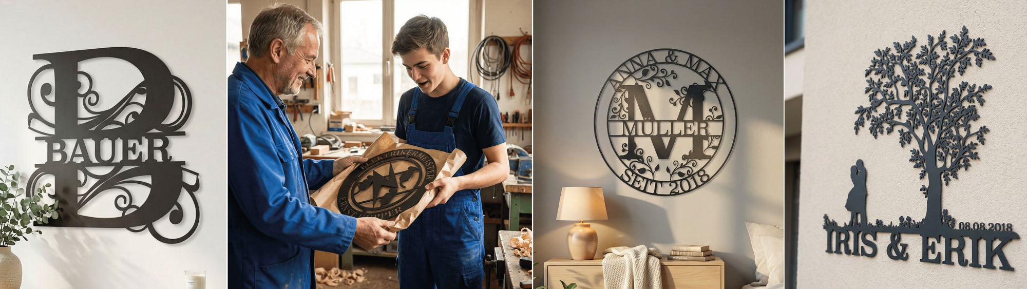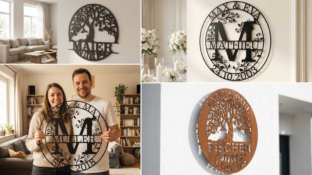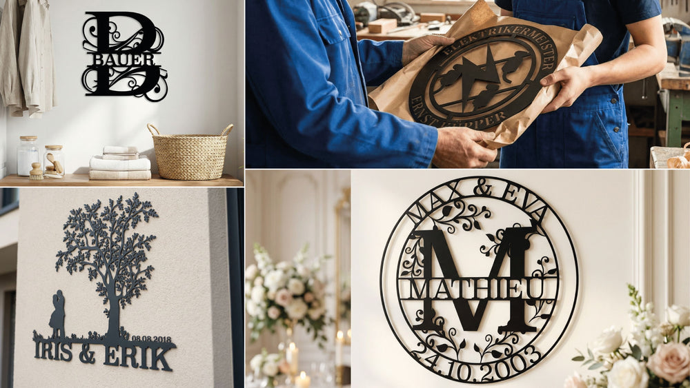 Unsere Schilder werden aus 2mm dickem Stahl gefertigt, mittels Laser geschnitten und in verschiedenen Farben pulverbeschichtet. Wir haben eine Auswahl klassischer Farben wie Schwarz, Anthrazit, Weiß und Gold. Außerdem bieten wir Edelstahl und Cortenstahl an, die für ihre einzigartige Rostoptik bekannt sind. Für spezielle Farbwünsche stehen wir Dir gerne zur Verfügung.