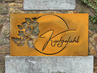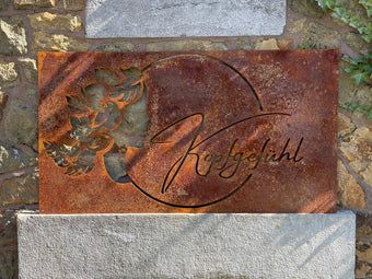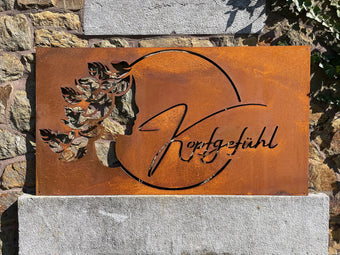 Cortenstahl verhält sich genau wie guter Wein. Man benötigt einen guten Rohstoff und beste Vorraussetzungen. Die gewünschte Rostpatina entwickelt sich im Laufe der Zeit, wenn das Schild den Elementen Wasser und Sonne ausgesetzt ist. Die Patina Deines Schildes wird sich im Laufe der Zeit weiter entwickeln bis dieser Rost eine Schutzschicht bildet der den darunter liegenden Stahl bedeckt.